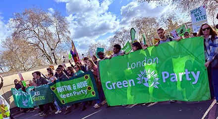 Yes, there was the Together march in London on the same day, but we can say with absolute certainty that there were not 219,300 Green Party members marching. There was a healthy Green Party presence, but we would be very surprised if there were more than 500 of them. And, as the March 28 spring conference took place entirely online, they could have joined on their mobile phones during or after the demo.