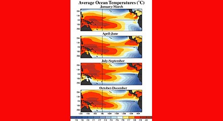Basically then, when surface water temperatures are warmer than average in the eastern equatorial Pacific Ocean, you have El Niño - and when they are cooler than average, you have La Niña. It is important to note that Enso - an irregular pattern, but with some semblance of cycles - is not predictable in any certain sense and it effects the climate of much of the tropics and subtropics, and has links to higher-latitude regions of the world (or ‘telecommunications’, which in atmospheric science refers to climate anomalies being related to each other).