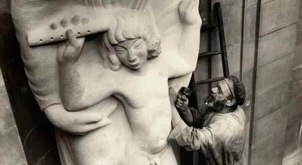 In the early hours of May 20 a man in a Spiderman mask was arrested for vandalising the statue of Prospero and Ariel by Eric Gill at the entrance to Broadcasting House, the BBC offices on Portland Place, London. He obtained access via the scaffolding which had been put up for the purpose of restoration of the statue after a very similar attack in January 2022.