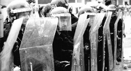 The police and the government characterised what happened at Orgreave as a riot and the pickets as ‘vicious thugs’, intent on conflict with the police. What actually happened was a punishment beating instructed by the government and planned by the South Yorkshire police (and carried out by police from across the whole country). This was filmed from behind police lines and then disseminated as propaganda after careful editing, with a scripted voice-over telling the story from the police’s side only.