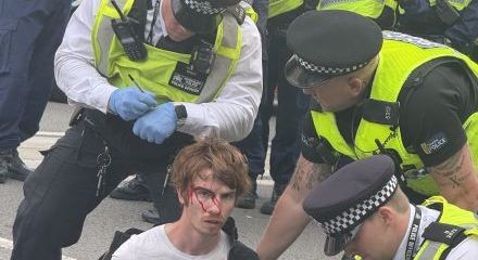 They alleged that that there had “been a coordinated effort to prevent officers from carrying out their duties, which escalated to violence”, with “an exceptional level of abuse, including punches, kicks, spitting and objects being thrown, in addition to verbal abuse”.7 However, photos and video footage showed the Met wielding their batons and aggressively arresting non-violent people. At least one young man was injured and required treatment following a police assault.